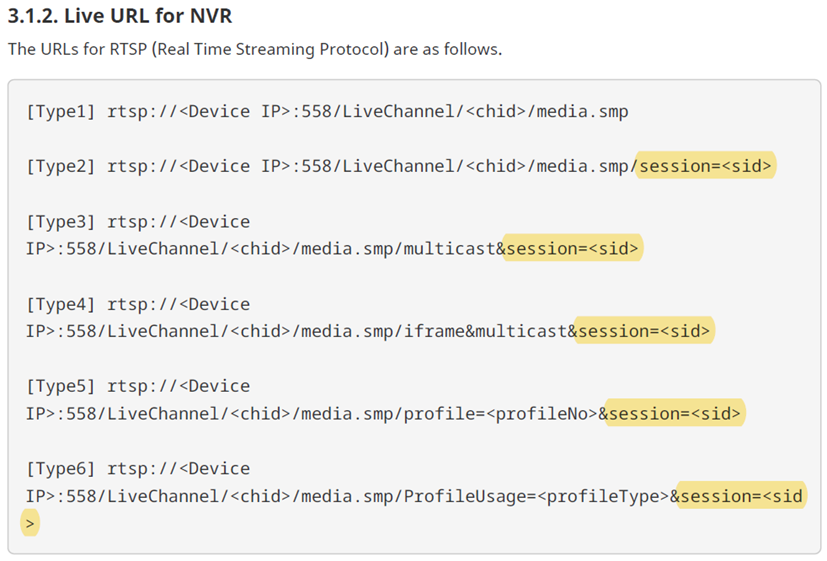 - بشكل عام بالنسبة لـ NVR، بعد إنشاء معرف جلسة للبث المباشر والحصول على URI للبث، يمكننا إنشاء جلسة LIVE RTSP.