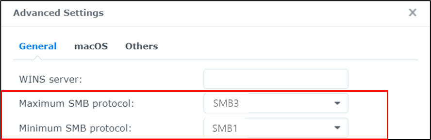- من الممكن ضبط إصدارات SMB من 1.0 إلى 3.0 على NAS.
