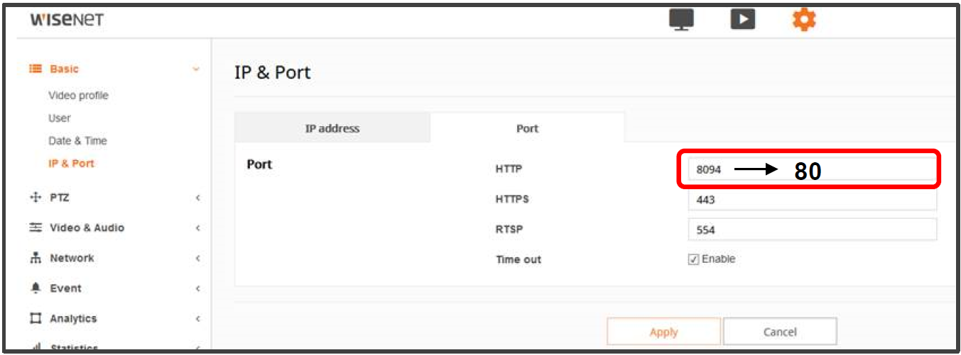 إعداد منفذ شهادة الجهاز HTTP 80