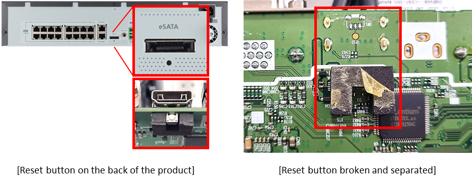 - تعرض زر [إعادة تعيين كلمة المرور] الموجود على الجزء الخلفي من المنتج للتلف بسبب الضغط المتكرر عليه بالضغط الزائد.