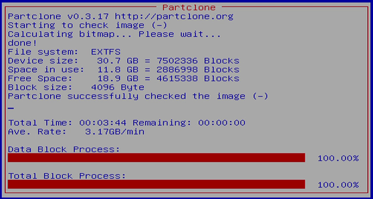 14.Partclone will take roughly 5 minutes to complete(Figure 6)