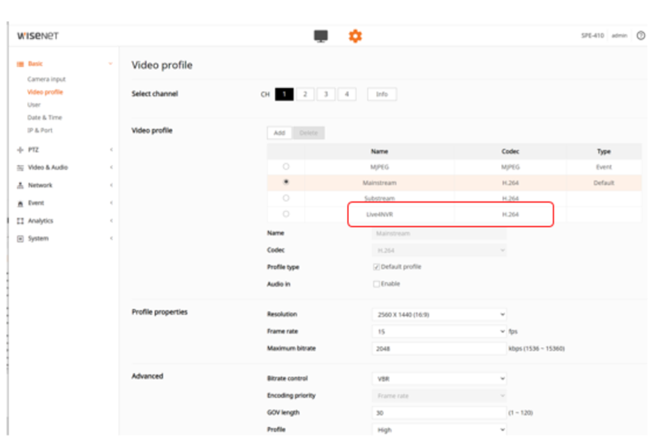 Also, when you register SPE-410 to a decoder such as SPD-152, a profile called “Live4NVR” for Multi-channel monitoring will be created.