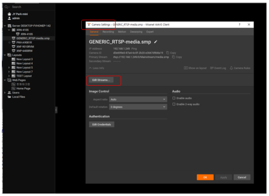 Go to Camera Setting > General > Edit Stream