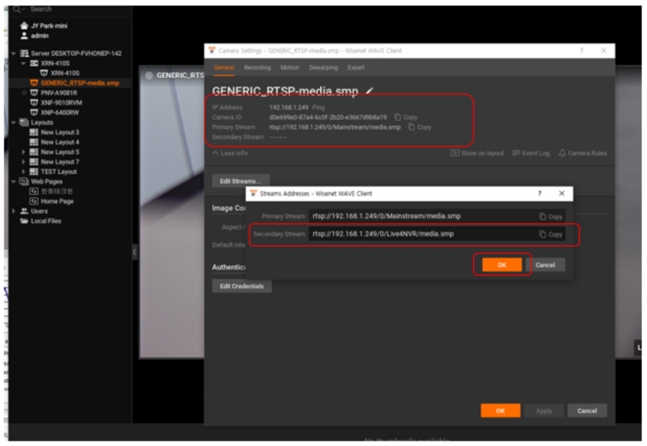 - Two “Live4NVR” connections: SPD-150 and Wave(Secondary)