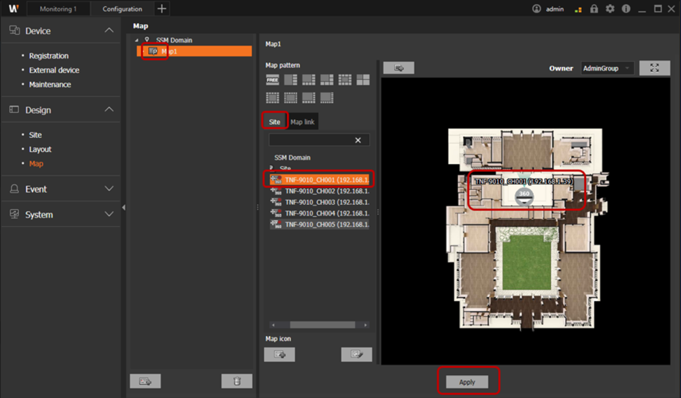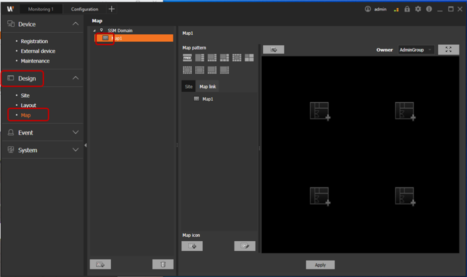 2. Upload the map image to be used and then select the site at the bottom of the map pattern.