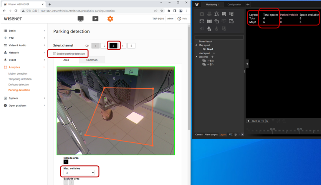 4. In TNF-9010 WebViewer, go to Setting > Analytic > Parking Detection