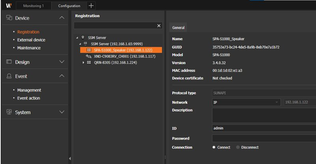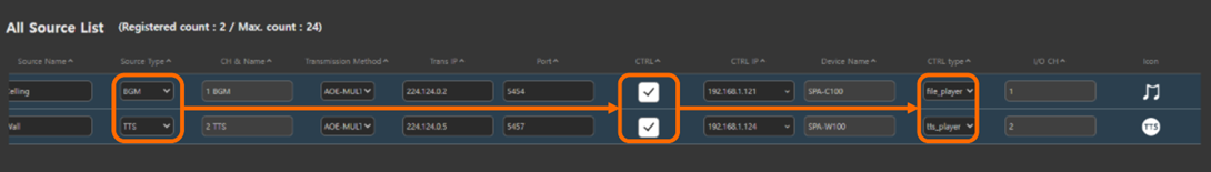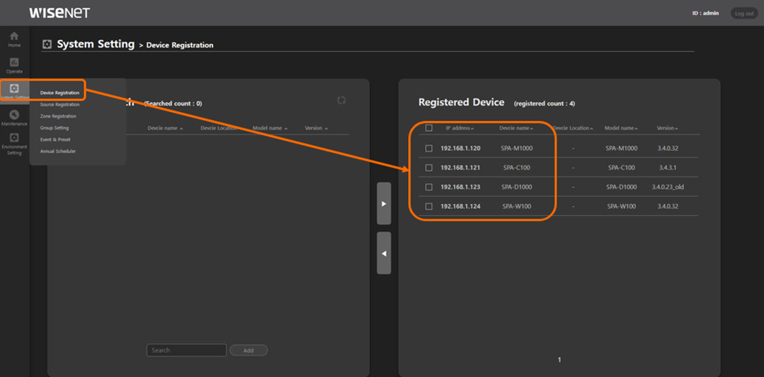 - Only audio server(SPA-S1000), audio module(SPA-D1000) or <Controller> mode speaker can be registered
