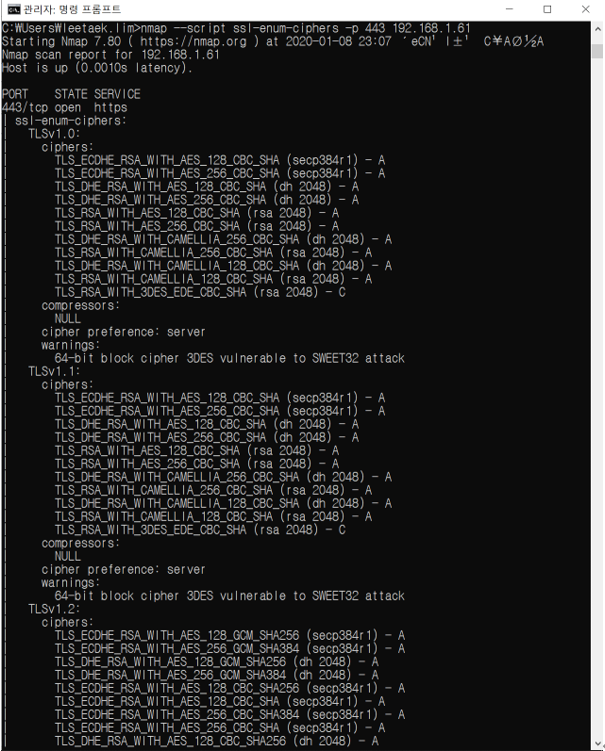 - #nmap --script ssl-enum-ciphers -p <port> <IP>