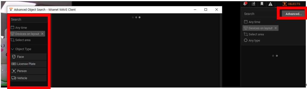 You can do forensic search of video based on object attributes. Click the button to open the Advanced Object Search window.