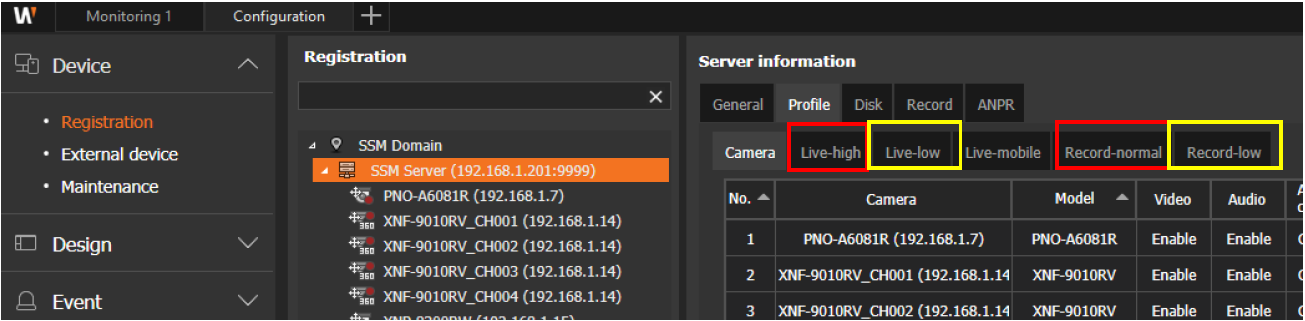 . Recommended to set ‘Live, low’, ‘Record-low’ as same profile