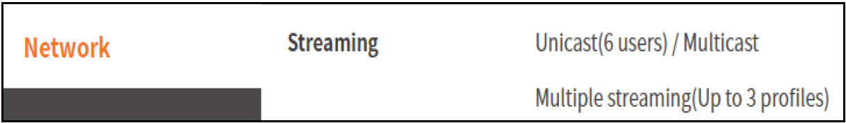 - Multi streaming(Max. 3 profile)profile): Able to access up to three different profiles at the same time