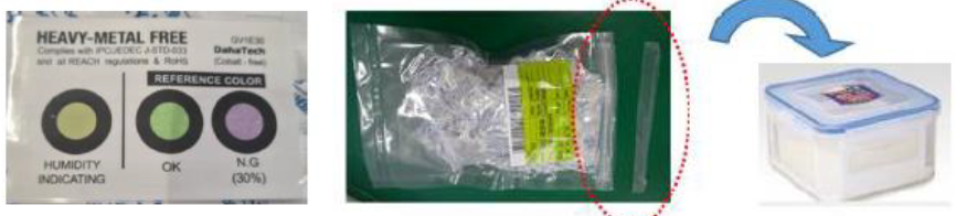 - Check the color of ‘HUMIDITY INDICATING’: Green(Good to use), Purple(Needs to be disposed)