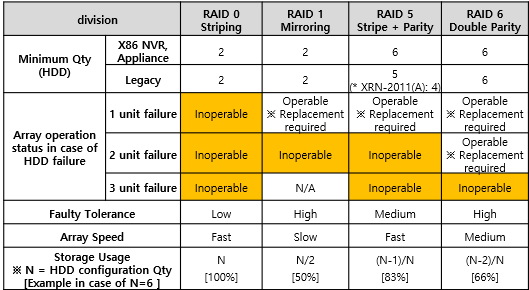 ㆍ In case of degradation, the bad HDD should be replaced immediately to prevent array data loss.