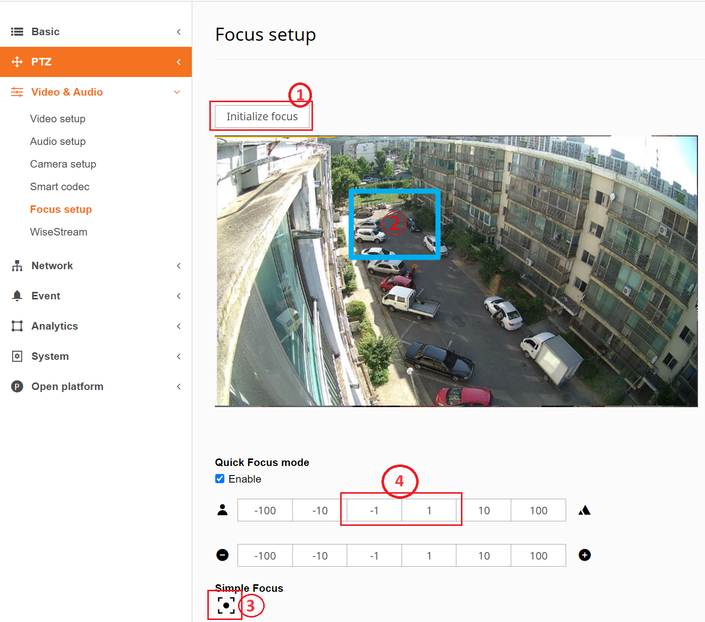 Navigate to Video & Audio and select Focus Setup.