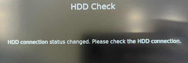 - Error pop-up “HDD connection status changed. Please check the HDD connection.”