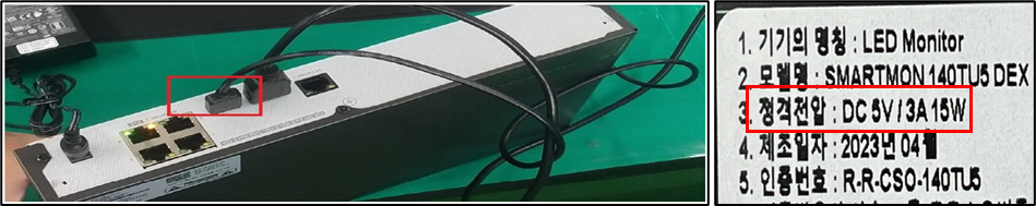 - Portable monitor : 15W (DC 5V, 3A) // NVR USB(2.0) : 2.5W (DC 5V, 0.5A)