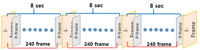 - If frame rate is 30fps and GOV length is 240, I-frame is received at every 8 secs
