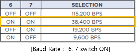 . Baud rate : 38,400bps