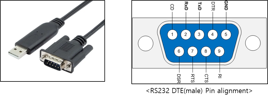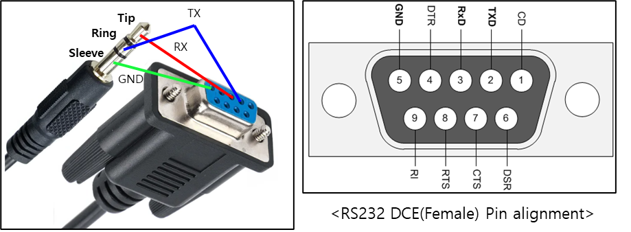 . RS232 should be purchased as a DCE (Female) type and needs to check the Tx and Rx