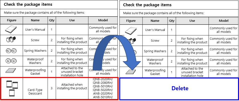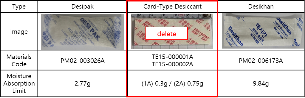 + Card-Type Desiccant’, there is no need for card-type desiccants.