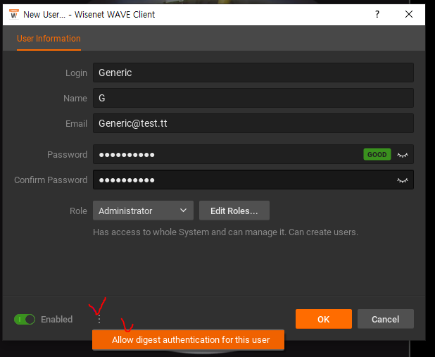 * The Hanwha Camera uses digest authentication for event delivery, but WAVE does not allow digest