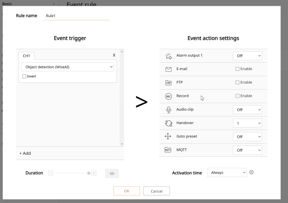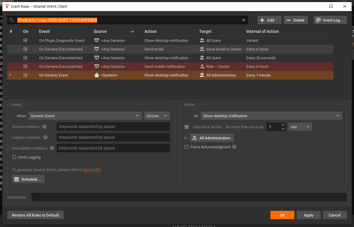 5. In the WAVE settings, set [Camera rule] - [Event-When:Generic Event].