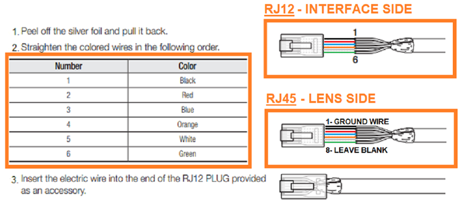 NOTE: The product always comes with the cable for the lens module and the RJ12.