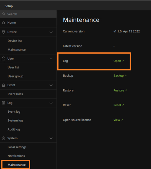 3. Click Open on the line for Log (Figure 3)