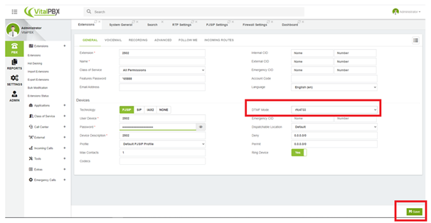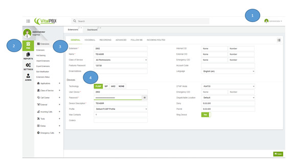 Extension creation in VitalPBX for the registration