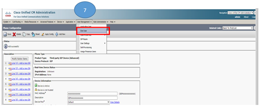 Extension creation in Cisco PBX Version 12.5 for the registration of the intercom.