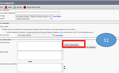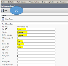 b) In the Directory Number configuration page, provide the phone number and the route partition.