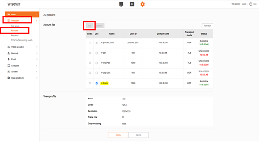 13. Confirm that the intercom (TID-600R) device added in step 4 is controlled by the end-user added in step 9