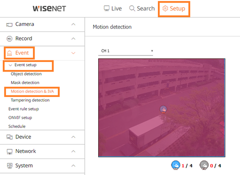 1. Go to Setup > Event> Event Setup> Motion Detection and IVA (Figure 1)
