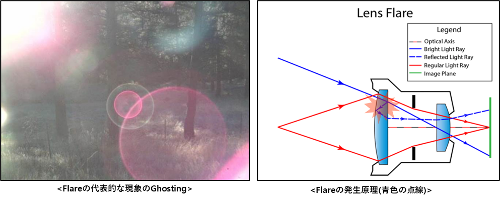- Flareは、大半のカメラで発生するし、カメラごとに発生する角度は異なる